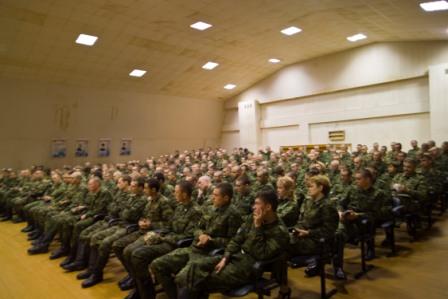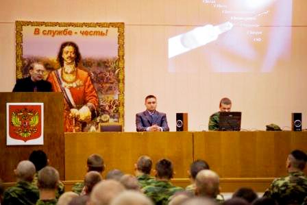 Открытый урок против наркотиков для кремлевских курсантов ведет председатель НСНБР А.Г.Огнивцев. 2009 год. Москва.